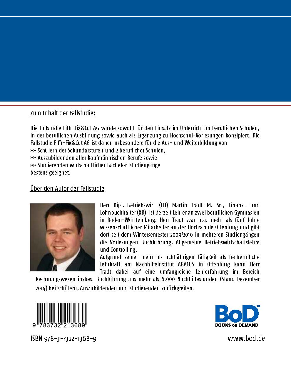Die Fallstudie Fiffi-Fix&Cut AG wurde sowohl für den Einsatz im Unterricht an beruflichen Schulen, in der beruflichen Ausbildung sowie auch als Ergänzung zu Hochschulvorlesungen konzipiert. Die Fallstudie Fiffi-Fix&Cut AG ist daher insbesondere für die Aus- und Weiterbildung von Schülern der Sekundarstufe 1 und 2 beruflicher Schulen, Auszubildenden aller kaufmännischen Berufe sowie Studierenden wirtschaftlicher Bachelor-Studiengänge bestens geeignet.